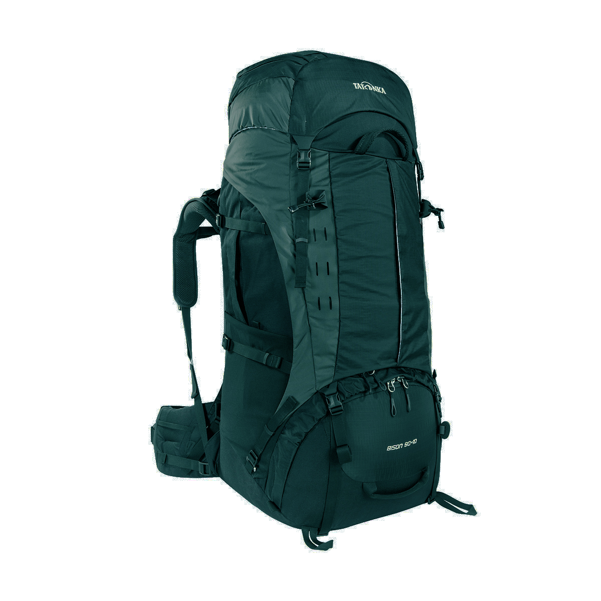 Туристический рюкзак Tatonka Bison 90 - лучший выбор для тех, кто отправляется в длительный пеший поход c грузом, вес которого 25-35 килограмм. Благодаря системе подвески Х1, до 85% веса переносимого груза рюкзак перераспределит с плеч на бедра, тем самым спасая вашу спину и плечи от боли и усталости.